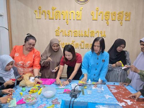 วันที่ ๙ ตุลาคม ๒๕๖๘ สำนักงานพัฒนาชุมชนอำเภอแม่ลาน โดยนางณัฐชนา พันธ์ดำ รักษาการพัฒนาการอำเภอแม่ลาน เจ้าหน้าที่พัฒนาชุมชน เครือข่ายองค์กรสตรี ร่วมประดิษฐ์ผีเสื้อผ้าไทยเพื่อสนับสนุนในกิจกรรม "สอยดาว" ในร้านกาชาดของสมาคมแม่บ้านมหาดไทย งานกาชาด ประจำปี ๒๕๖๘ ภายใต้แนวคิด “๗๐ พรรษา ขัตติยานารีรัตนา ปวงประชาสดุดี” เพื่อเฉลิมพระเกียรติ สมเด็จพระกนิษฐาธิราชเจ้า กรมสมเด็จพระเทพรัตนราชสุดาฯ สยามบรมราชกุมารี ในวาระทรงเจริญพระชนมพรรษาครบ ๗๐ พรรษา ๒ เมษายน ๒๕๖๘ ซึ่งจะจัดขึ้นระหว่างวันที่ ๑๑-๒๑ ธันวาคม ๒๕๖๘ สวนลุมพินี เขตปทุมวัน กรุงเทพฯ ณ ห้องประชุมทุ่งใหญ่ ชั้น ๒ ที่ว่าการอำเภอแม่ลาน จังหวัดปัตตานี